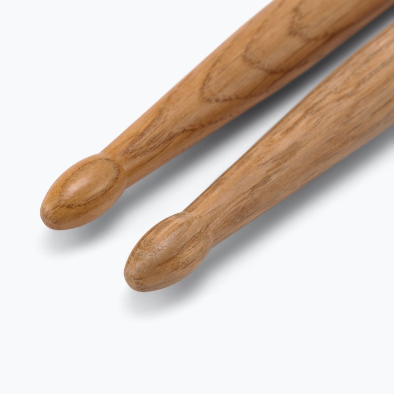 Hickory wood for medium weight and mild flexibility with a wood tip for warm cymbal tone