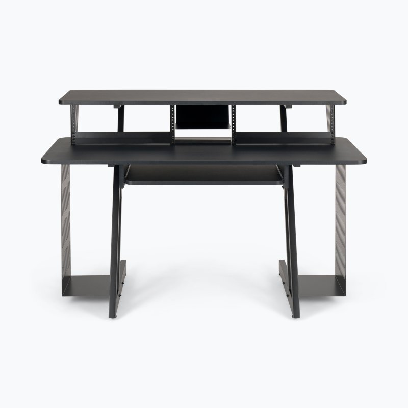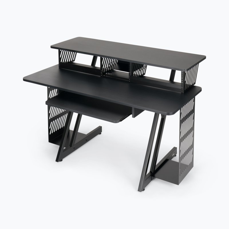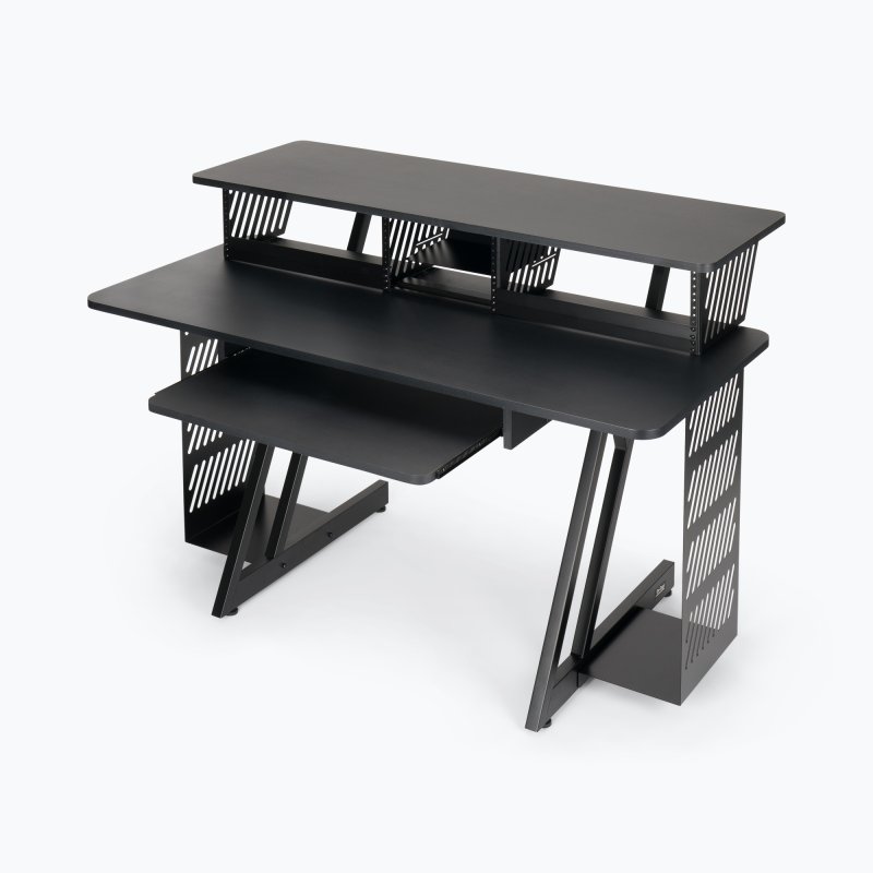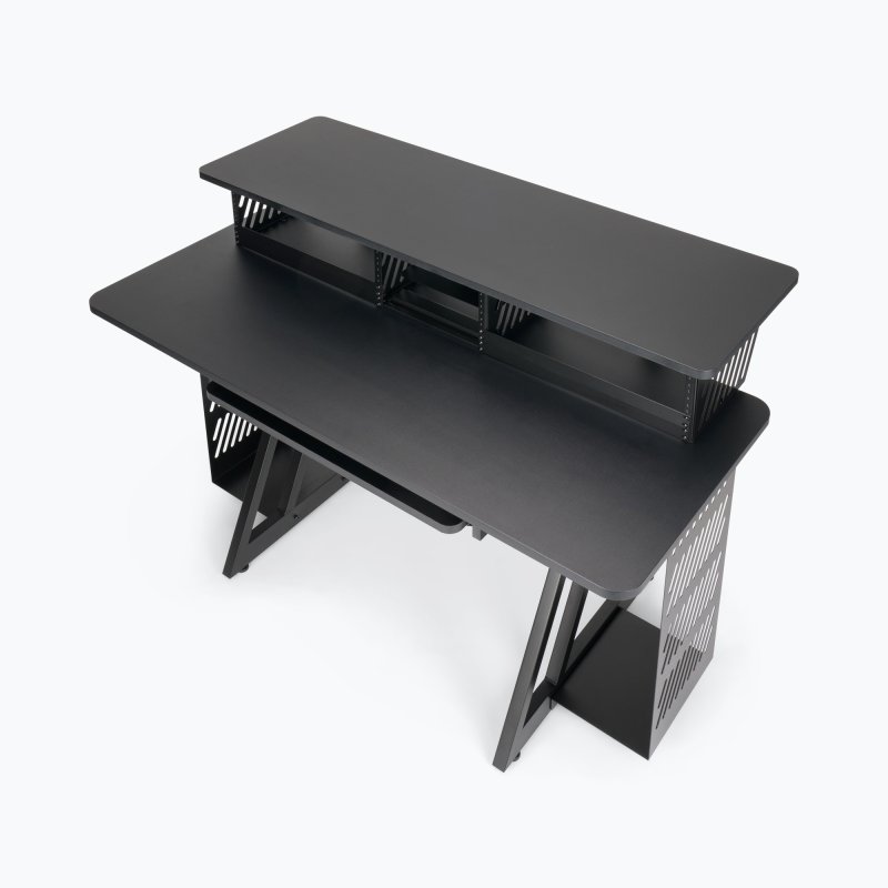 Sliding tray keeps the computer keyboard or a small MIDI controller at a comfortable level and slides under the main worksurface for convenient storage