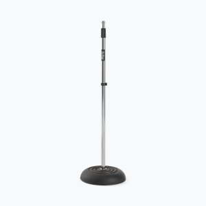 Our MS7201C Round-Base Mic Stand features a heavy yet portable round base that delivers exceptional stability and withstands demanding conditions. Rubber padding on the bottom of the base reduces vibrations and prevents unwanted slipping. The upper shaft accepts mic clips, booms, and other mic accessories. The shaft is available in three colors to complement the style of various performance spaces.