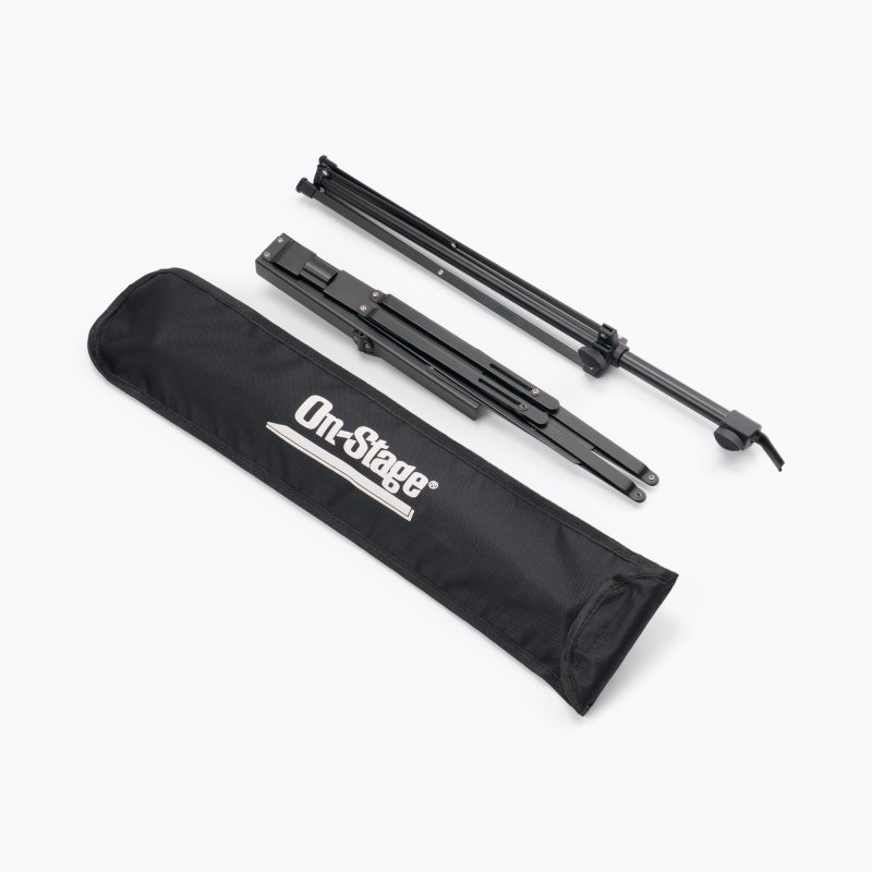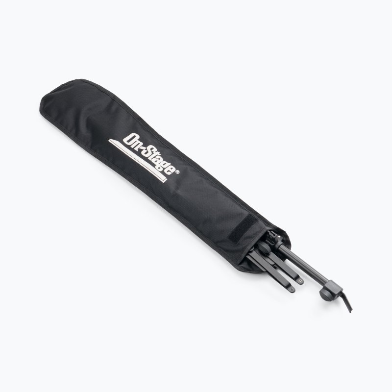 The SM7033BB Sheet Music Stand with Removable Square Bookplate delivers stable performance in a portable package. The orchestral-style rectangular bookplate enables musicians to lay out multiple pages side by side, reducing the need for page turns. Built-in curved retainer rods prevent music from falling or blowing away, especially during outdoor performances. The rods feature spring flex points for ease of lifting when positioning music, plus flat ends with rubber tips that provide pressure and traction to keep pages from shifting. The adjustable height enables players to dial in a comfortable viewing position. The bookplate can be detached from the base, and the bookplate and base both quickly fold down for efficient storage and transportation. When folded, the entire stand fits into the included bag that has a secure closure and an adjustable strap for ease of carrying.