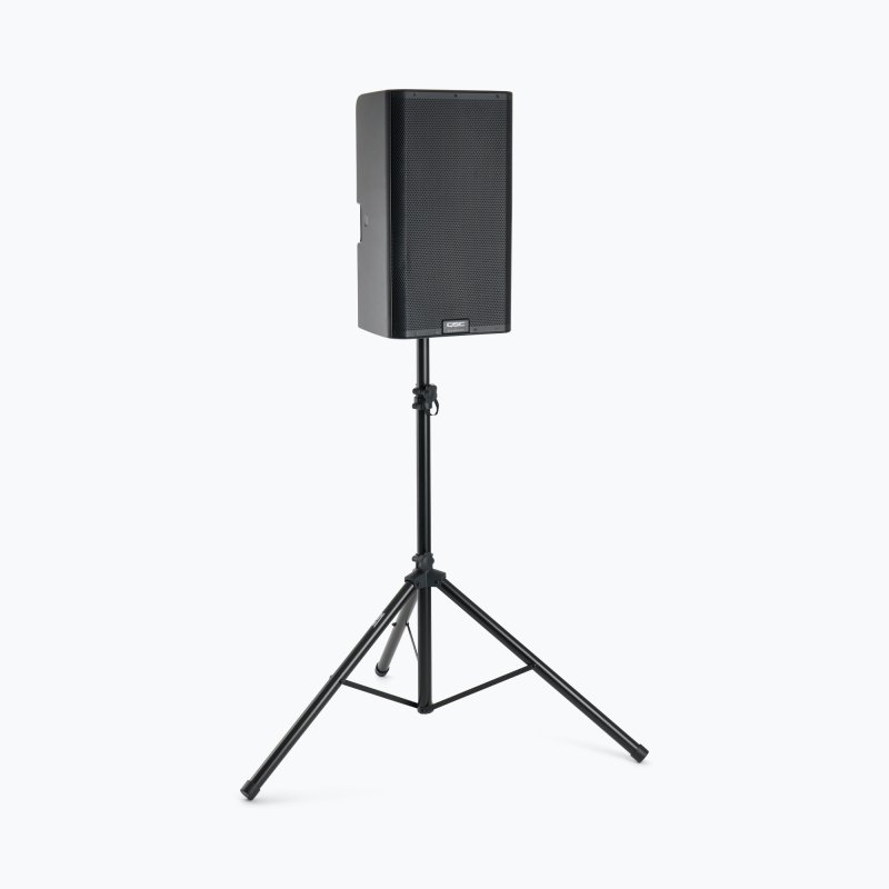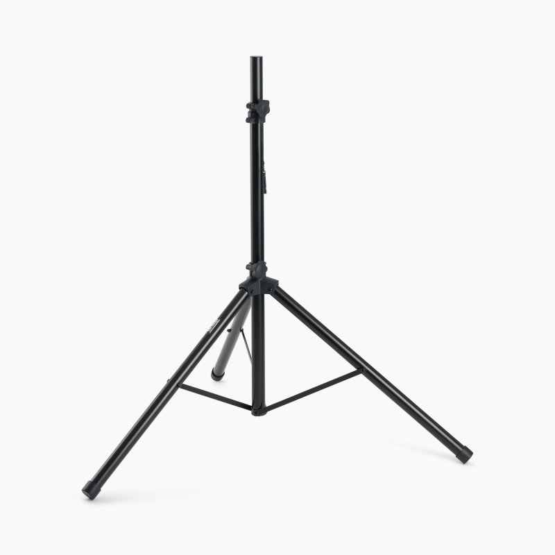 The SS7500 Speaker Stand delivers reliable, adjustable speaker elevation in a highly portable package. Its speaker pole is compatible with a wide range of PA loudspeakers that have a 1 3/8" mounting socket. With the use of a speaker-pole adapter sleeve (sold separately), any speaker with a 1 1/2" socket can also be mounted. The stand's height adjusts, enabling precise speaker placement and sound direction, and the height settings lock to ensure reliable support. Its heavy-duty construction, braced base, and nonslip feet work together to deliver outstanding stability and load balance. With its durable black finish, this stand adds to the professional appearance of any space. For convenient, compact storage and transportation, the tripod base folds flat.
