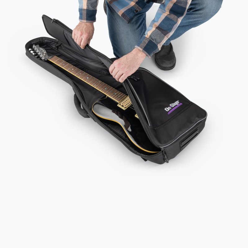 Interior foam padding guards the guitar against dings, dents, and other mishaps