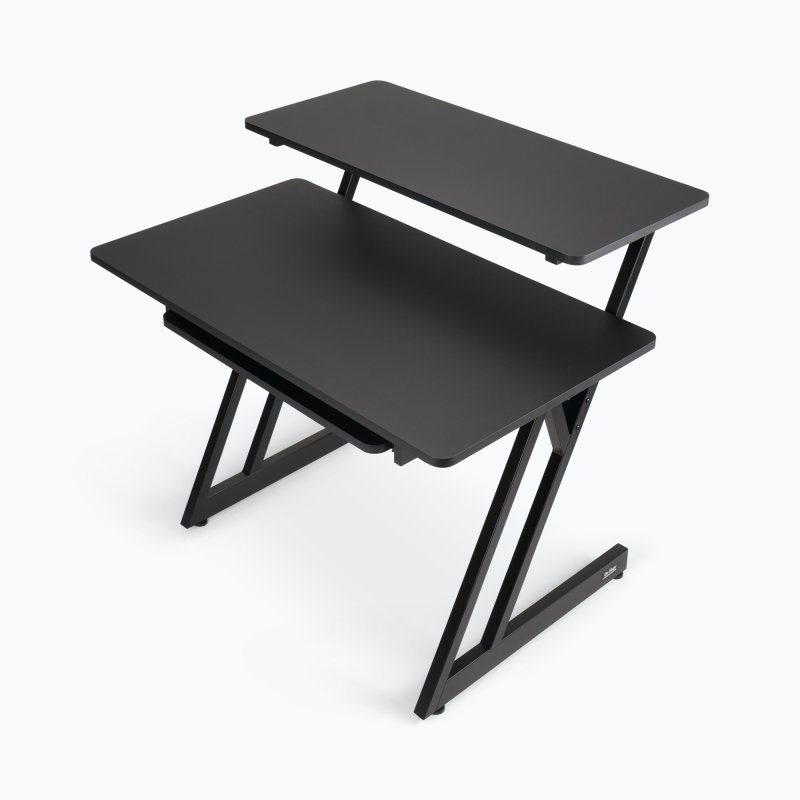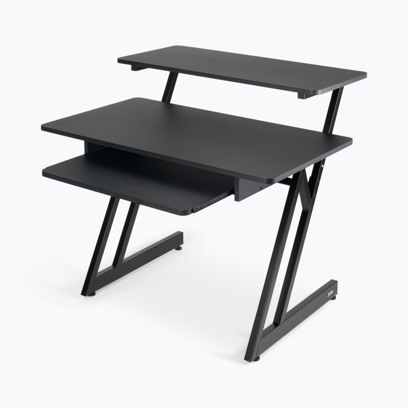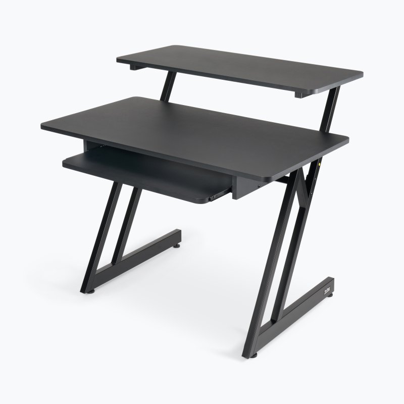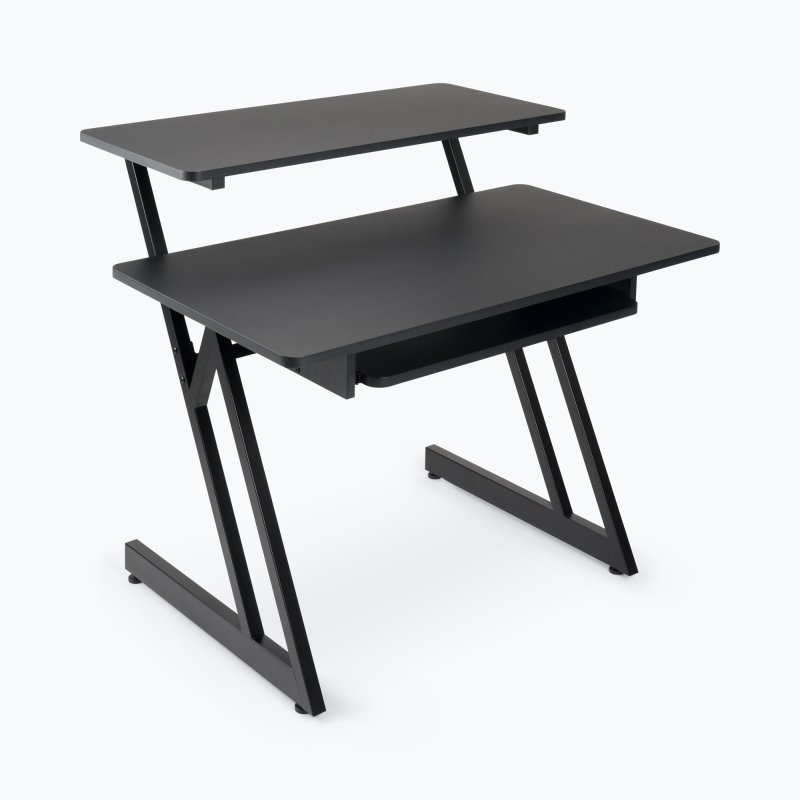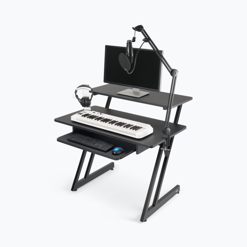 Desktop provides plenty of space for mixing gear, synths, and MIDI controllers