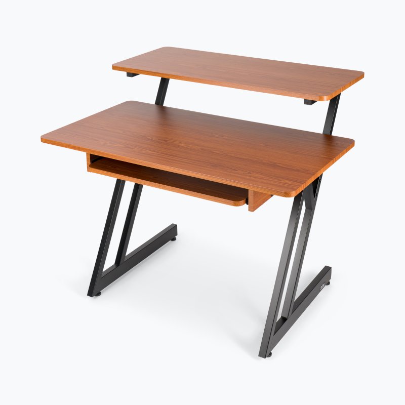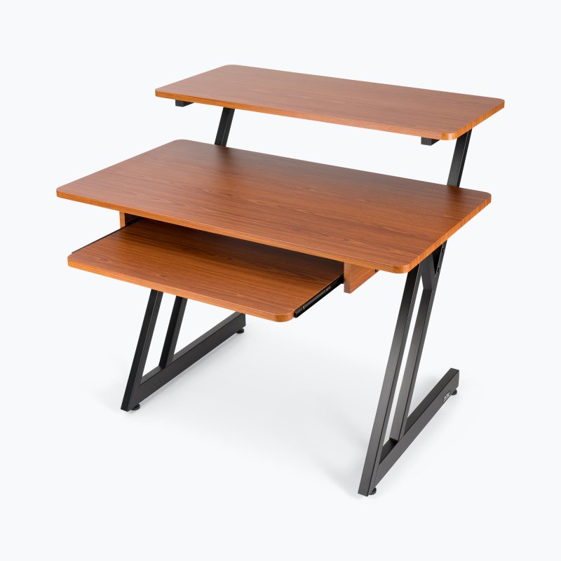 Desktop provides plenty of space for mixing gear, synths, and MIDI controllers